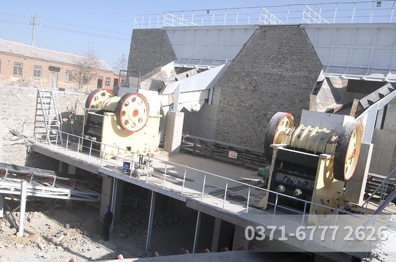 對于一些個頭比較大,比較硬的一些礦石,產量要求比較大的,需要多臺設備協同制沙。需要用到鄂式破碎機對礦石進行粗破,再進入反擊式破碎機進行再次破碎,滿足粒度要求的小石子進入hvi沖擊式制砂機進行制砂。還會用到一些給料機、輸送機、振動篩一些輔助設備。固定式制沙設備對場地的需求比較大,需要打地樁。