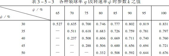 有關,k可直接由表3-5-3中查取。又D0=2R0,則“中間縮聚層”上的一個球落到落回點襯板上的法向沖擊動能En為: