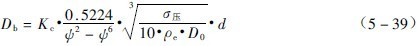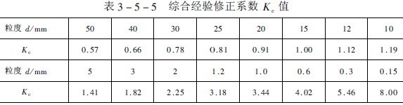 公式(5-39)即為推導(dǎo)出的球徑半理論公式。式中的綜合修正系數(shù)Kc可按表3-5-5中數(shù)據(jù)選取。