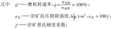 公式(5-36)是鋼球作拋落運(yùn)動(dòng)時(shí)導(dǎo)出的,球作瀉落式運(yùn)動(dòng)時(shí)力學(xué)還無(wú)法計(jì)算。瀉落式時(shí)球上升高度不高,用式(5-36)算出的結(jié)果還應(yīng)適當(dāng)加大。加之,前面推導(dǎo)公式時(shí)并未考慮鋼球的切向速度V1,的破碎作用。如果把V1的作用考慮在內(nèi),上式計(jì)算的球徑應(yīng)考慮加大15%。