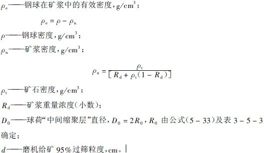 這樣,在實(shí)際給定的磨機(jī)工作條件下就可以按公式(5-39)計(jì)算所需要的鋼球直徑。公式計(jì)算時(shí)采用cm.g.s制量綱。
