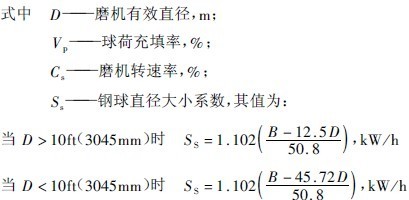 B為球徑,mm。由公式(5-40)和&5=Ss值看出,每噸大球的輸入功率比小球的大。筆者的工業(yè)試驗(yàn)證實(shí),球徑減小后磨機(jī)功率可下降2%-3%。