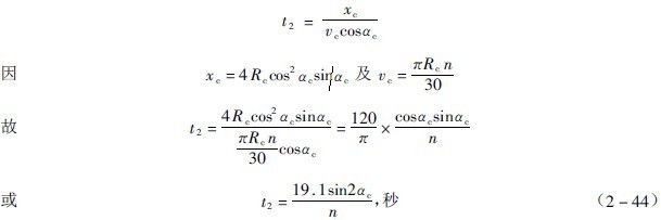 磨機(jī)一直是作圓運(yùn)動(dòng)的,但其中的鋼球的運(yùn)動(dòng)軌跡,一部分是圓曲線,另一部分是拋 物線。因此,磨機(jī)轉(zhuǎn)一轉(zhuǎn),鋼球的運(yùn)動(dòng)未必也就是一個(gè)循環(huán)。鋼球從脫離點(diǎn)A真拋到落回點(diǎn)B,比圓運(yùn)動(dòng)快,因而鋼球總是超前的,換句話說(shuō),磨機(jī)轉(zhuǎn)一轉(zhuǎn)時(shí),鋼球不只循環(huán)運(yùn)動(dòng)一次。設(shè)%"是鋼球作圓運(yùn)動(dòng)的時(shí)間,當(dāng)磨機(jī)轉(zhuǎn)一轉(zhuǎn)時(shí),用同樣速度作圓運(yùn)動(dòng)的鋼球轉(zhuǎn)過(guò)的圓心角為