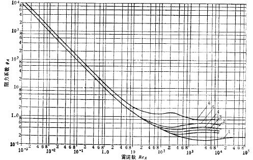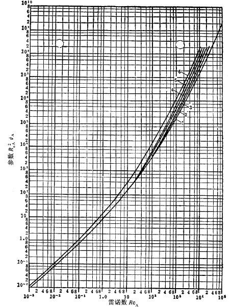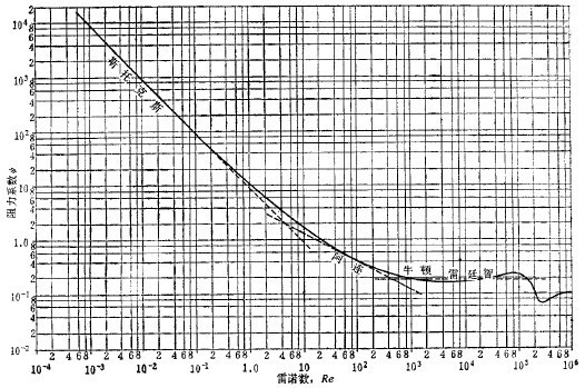 =(Re)由線如圖3-4-1所示。用此曲線,先按公式(4-5)算出Re值,再在圖上找到與其對應的