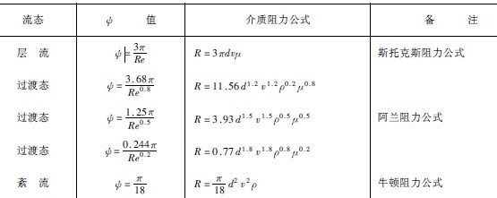球形顆粒沉降時受到的介質阻力R為: