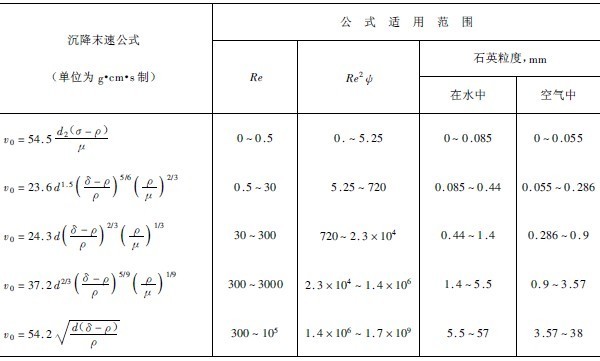 表3-4-2球形顆粒自由沉降的末速度公式及其適用范圍