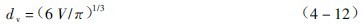 式中:dv———礦粒的體積當量直徑,m;