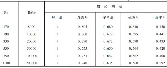 表3-4-5 各種形狀顆粒的形狀修正系數p
