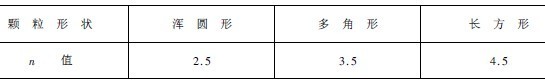 表3-4-7 n值與粒度的關系(形狀為多角形)