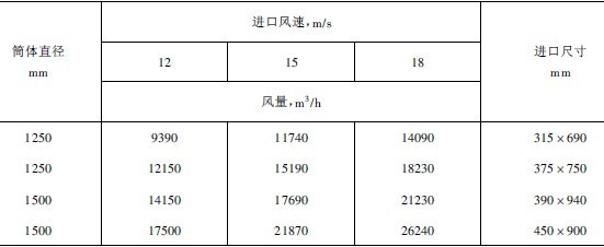 表3-4-9旋風集塵器氣流入口速度與分離粒度的關系